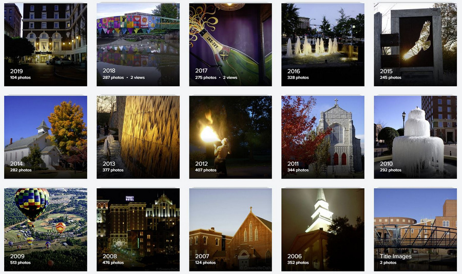 The web site (GreenvilleDailyPhoto.com) will disappear. But some photos could be useful to someone – either as historic reference or as art. So Denton Harryman, Frank Mansbach and I have decided to release our photos dating back to 2006 under a Creative Commons license. The Greenville Daily Photo archives will be hosted on Flickr’s Creative Commons, hopefully for a long time. The photos are presented as album groups for convenient browsing. And they’ll show up in searches for Creative Commons images.